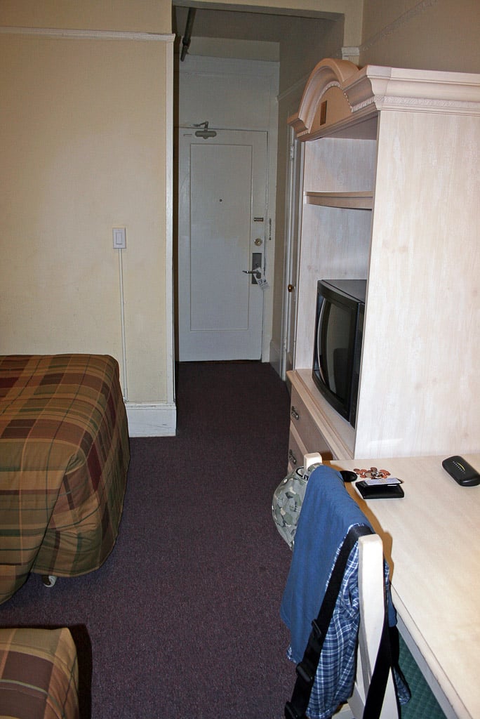 My room was at the very back of the hotel so it was extremely quiet, if nothing else. There was a strange smell in the hotel and in the room but I eventually got used to it. The room had seen better days, but hey… it was a 2-star hotel and priced accordingly, so….