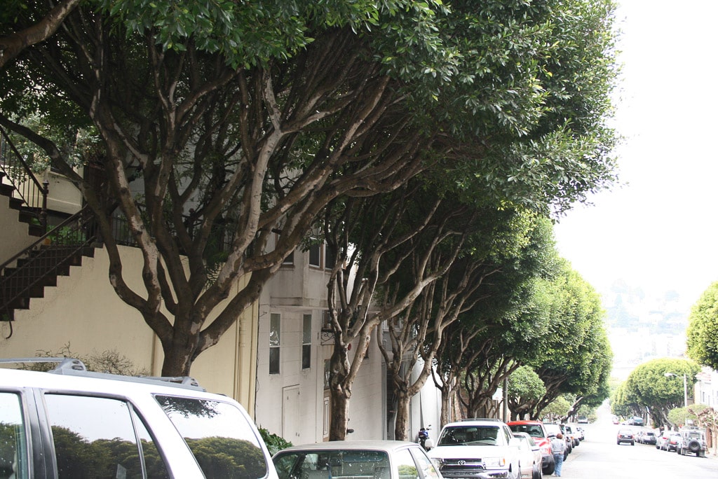 I walked back down Lombard Street to Mason Street. I kept on seeing these interesting-looking trees on the way down: