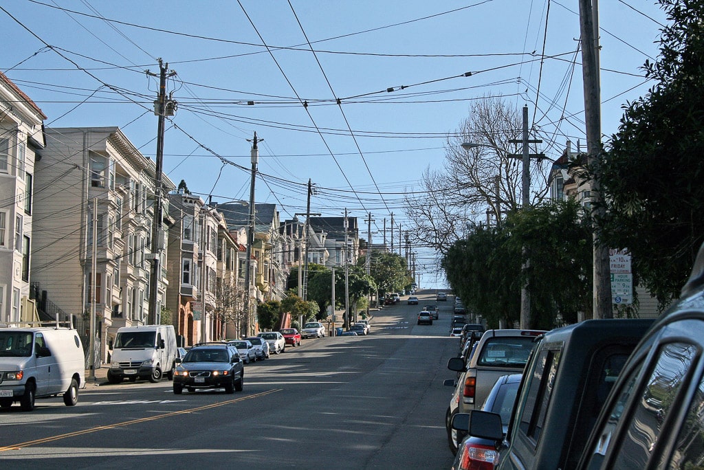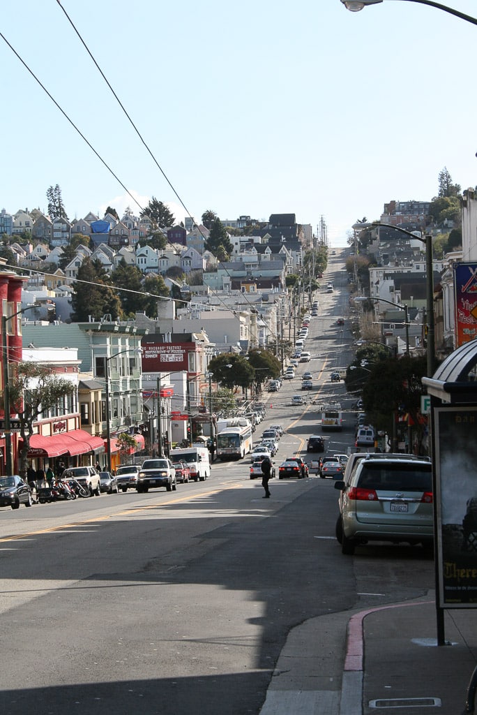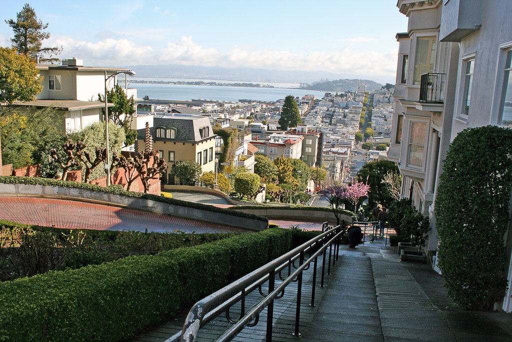 After breakfast I took the Powell-Hyde cable car to the top of Lombard Street, then walked down the side of Lombard Street to the bottom of the hill (at Leavenworth) and took some shots: