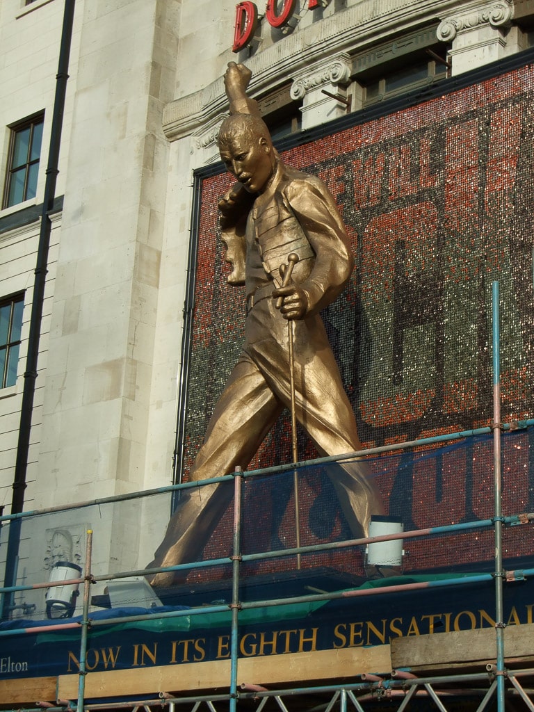 Going down Tottenham Court Road on my way to Oxford Street, I saw a giant Freddie outside the Dominion Theatre where We Will Rock You was running: