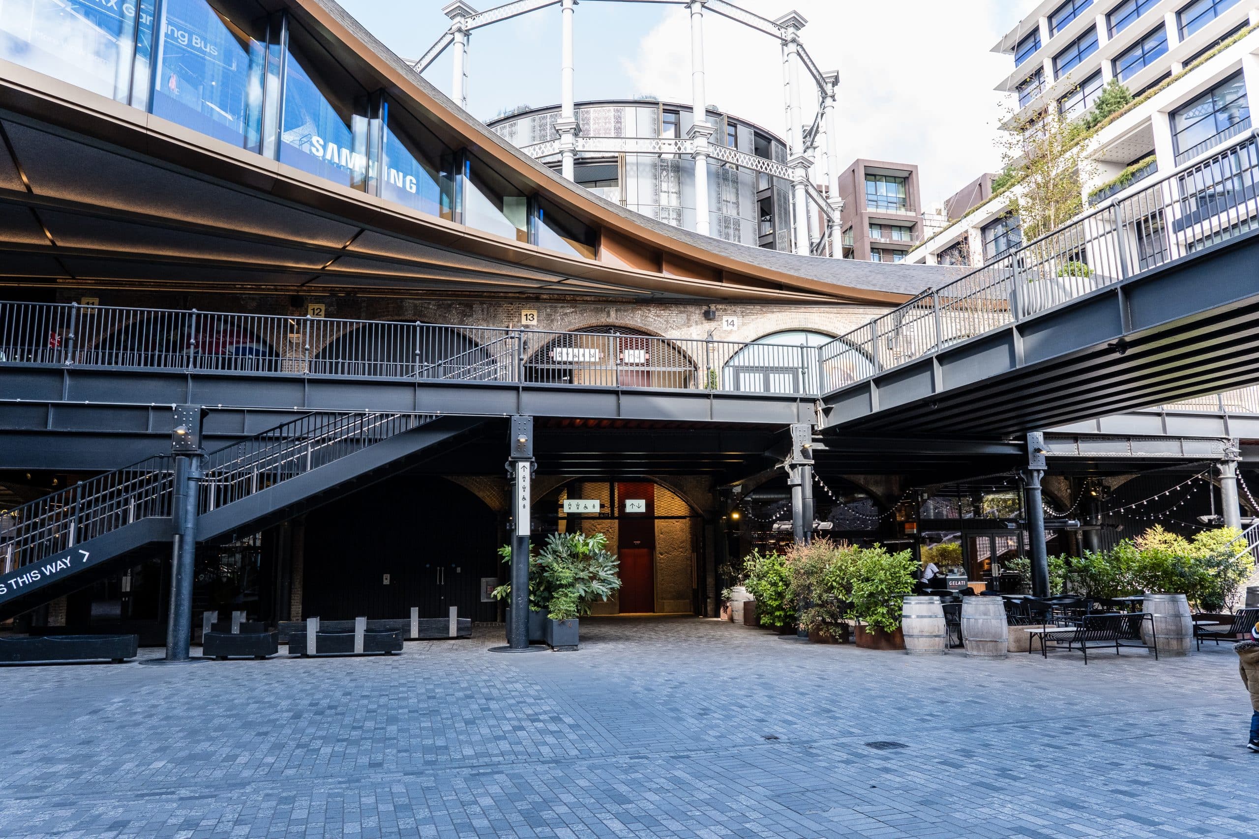 Returning to our hotel room we prepped for the day out. First, we paid a visit to the Coal Drops Yard, the new-ish community that had been built up behind King’s Cross station. Originally, the two Victorian coal drops sheds were used to receive coal from South Yorkshire and trans-ship it to narrow boats on the Regents Canal and to horse-drawn carts. These days Coal Drops Yard has been transformed into a shopping complex and privately owned public space that forms part of the King’s Cross Central development scheme in London. The development was designed by Thomas Heatherwick and opened in October 2018.