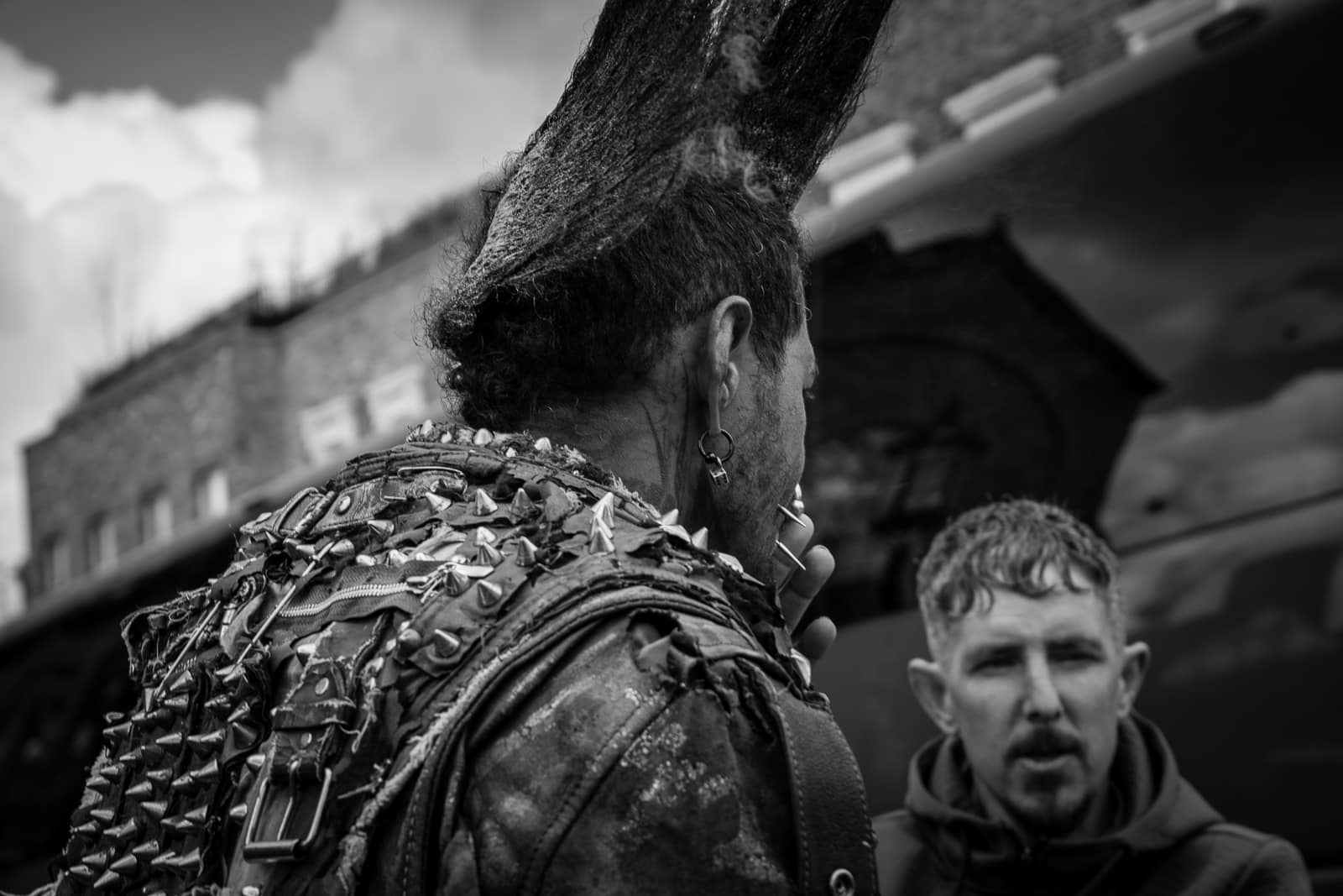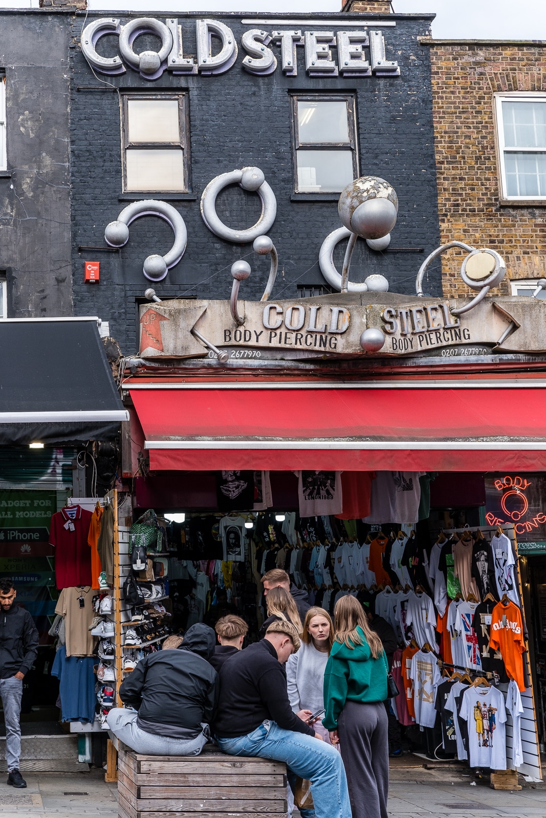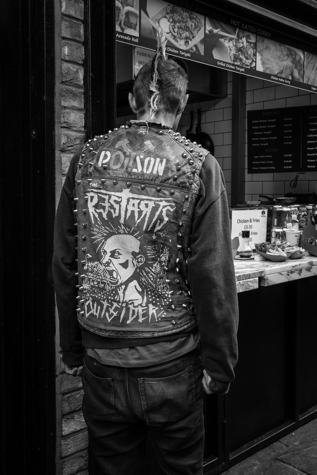 I highly doubt these guys were serious, authentic hard-core punks. They were no doubt down from the burbs, going “punk for a day”, to pick up some extra cash from the tourists around the market; they made no bones about taking a bit of cash at any rate (£2 a photo!):