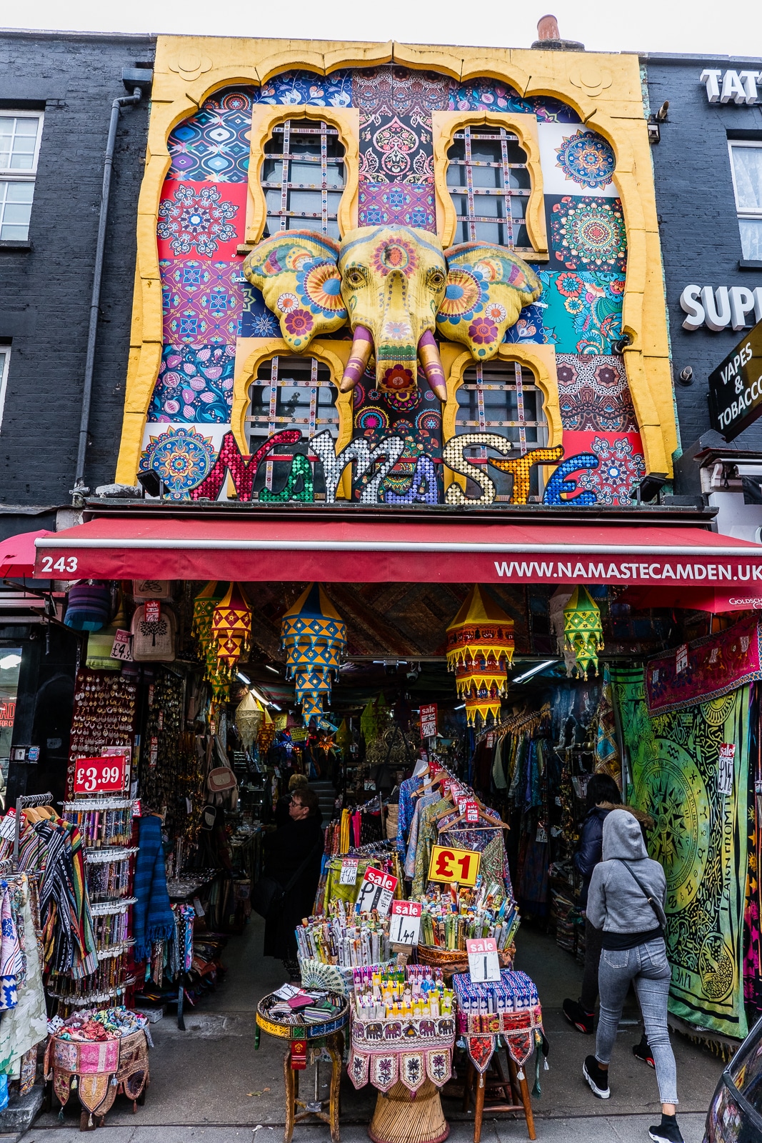 At about 12:30 we reached our destination: Camden Market. The first stop was for tea at Black Sheep Coffee, as I hadn’t had my morning tea yet. From there we spent the next several hours wandering through Camden Market – what a place!! Fascinating stuff, but man was it packed with people – so hard to move around. I think Vince and I were the old farts in the crowd of all the late-teens and 20-somethings that day: