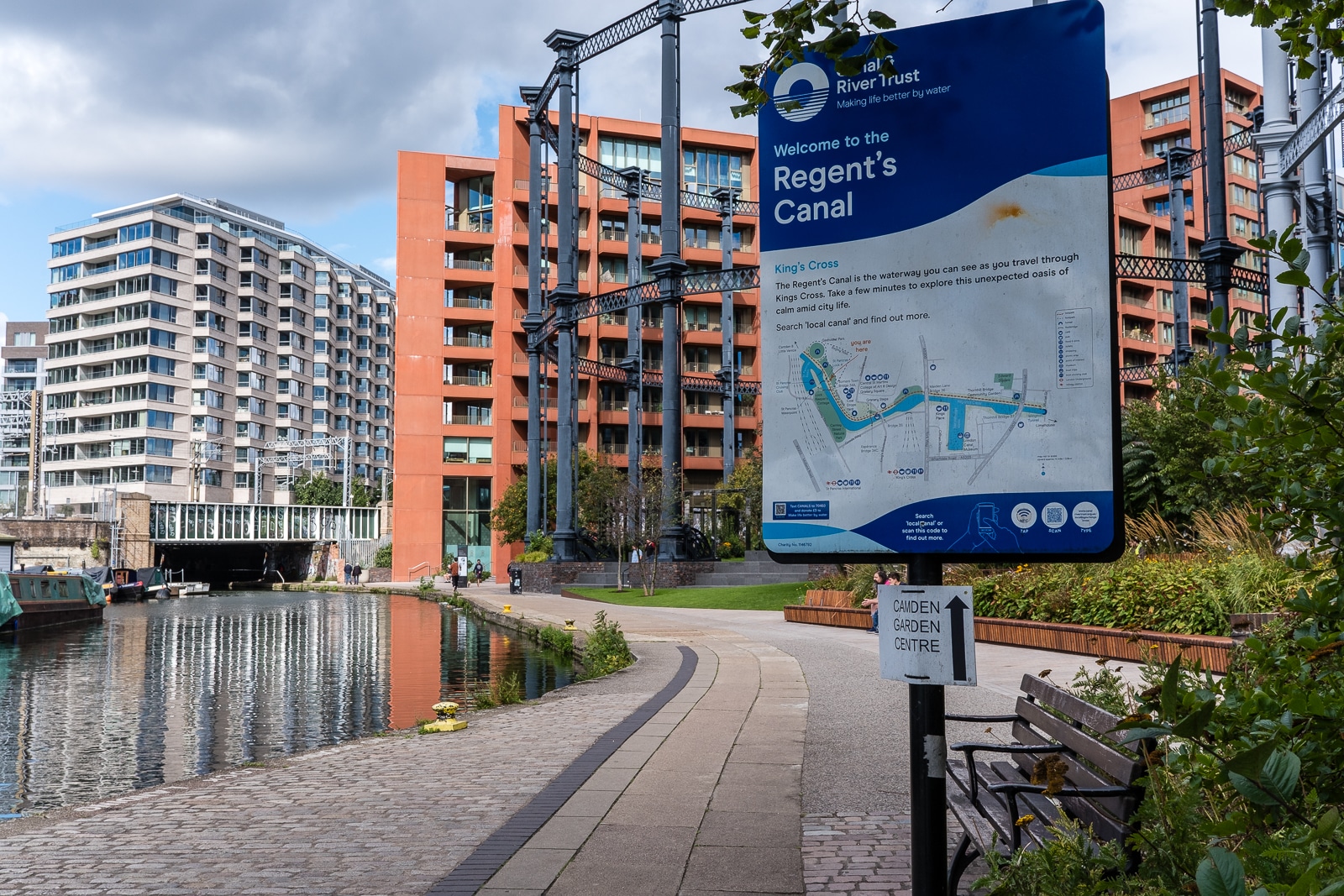 Wading through the masses of people at King’s Cross, I reached the Ticket Office and purchased our train tickets. We then walked over to York Way, returning to the Coal Drops Yard, the scene of yesterday’s brief visit. Our objective today was to continue our walk down Regent’s Canal, ending up in Camden Market.