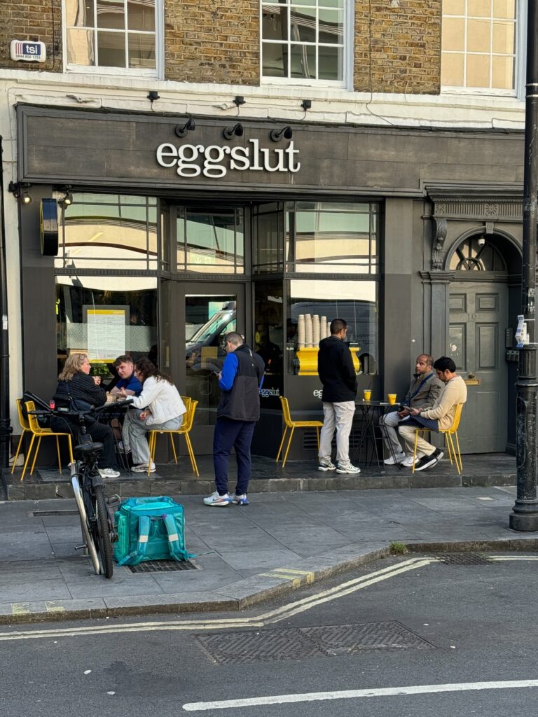 The memory card reader I had brought to London with me had packed it in, so I needed to get a new one at Park Cameras (53-54 Rathbone Place), one of London’s big photography supply stores. On our way to Park Cameras we passed this breakfast place at 19 Percy Street: