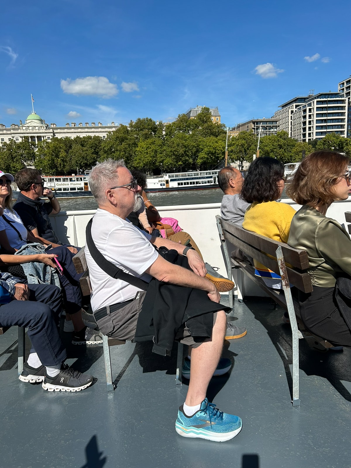 We finally boarded at Embankment Pier (it was a long queue to board a very full boat), and off down the Thames we went. We had such a good crew, and they provided a comprehensive, light-hearted commentary as we made our way from Embankment Pier to Greenwich, stopping at a couple more piers to pick up additional passengers: