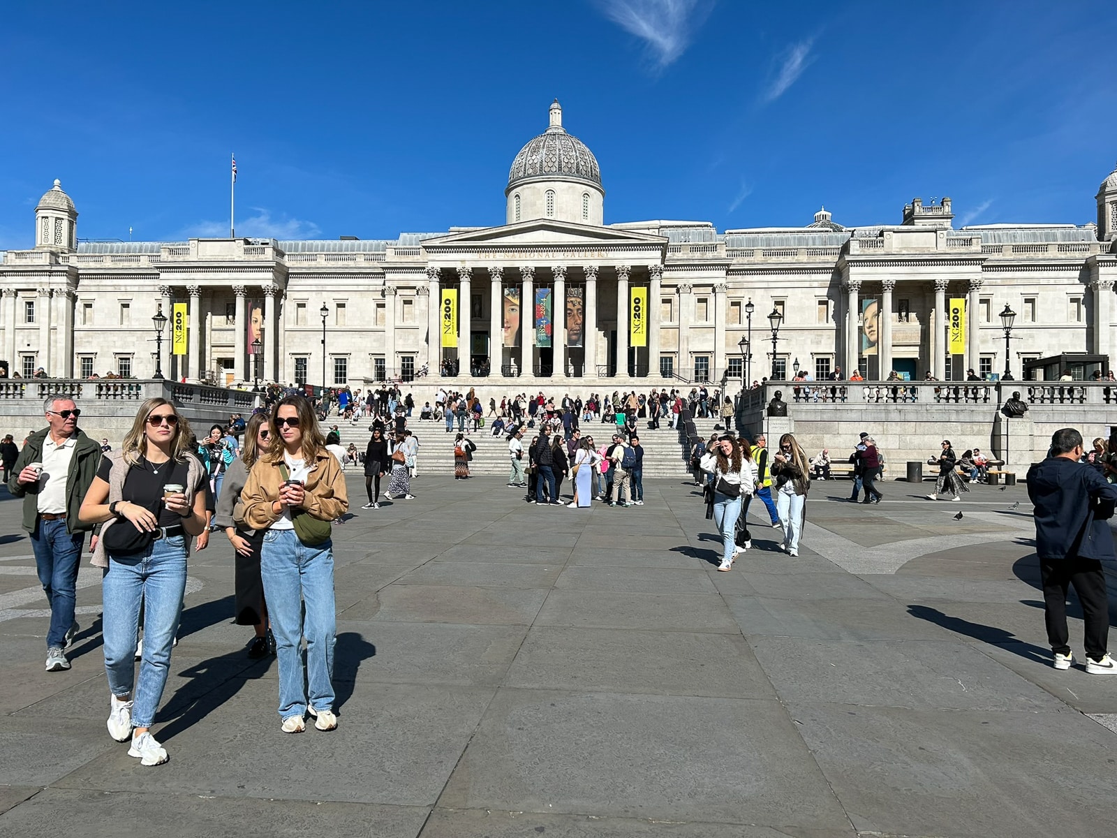 After buying our tickets we walked down to Trafalgar Square to soak up the vibe (it’s such a short walk from Leicester Square to Trafalgar Square). It was a beautiful sunny and warm day, and it was so nice just to walk around Trafalgar Square and enjoy the time there. Lots of people out and about:
