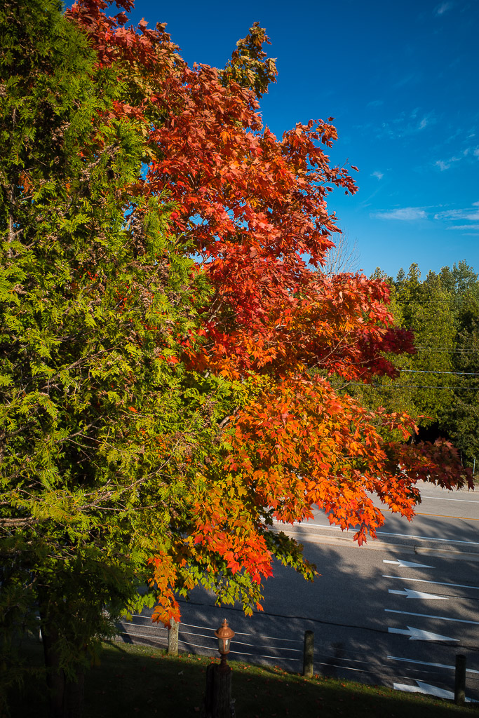 Having our fill, we left the Princess Hotel’s dining room and returned to our room at the Bruce Anchor Motel. Before we packed up I took one last shot of this tree outside our motel room, which was just starting to display the fall colours: