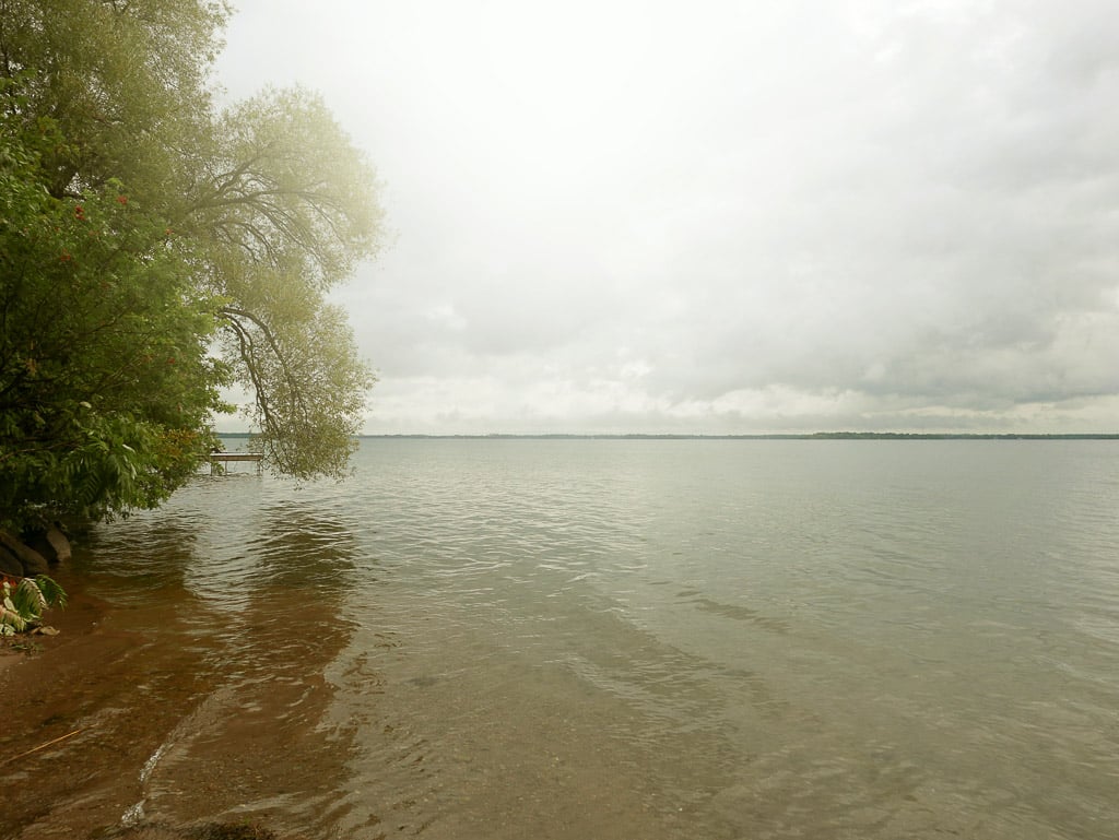 It was definitely a humid morning, but not hot. We reached Lake Couchiching on our walk, then returned to the hotel. By then it was about 11:15 so we called Carol and arranged to pick her up for our day trip to Huntsville.