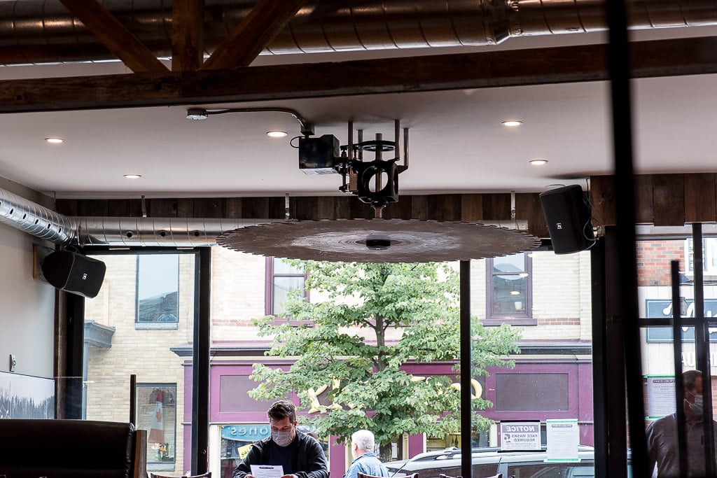 It’s not every day you see a buzzsaw on the ceiling of a restaurant