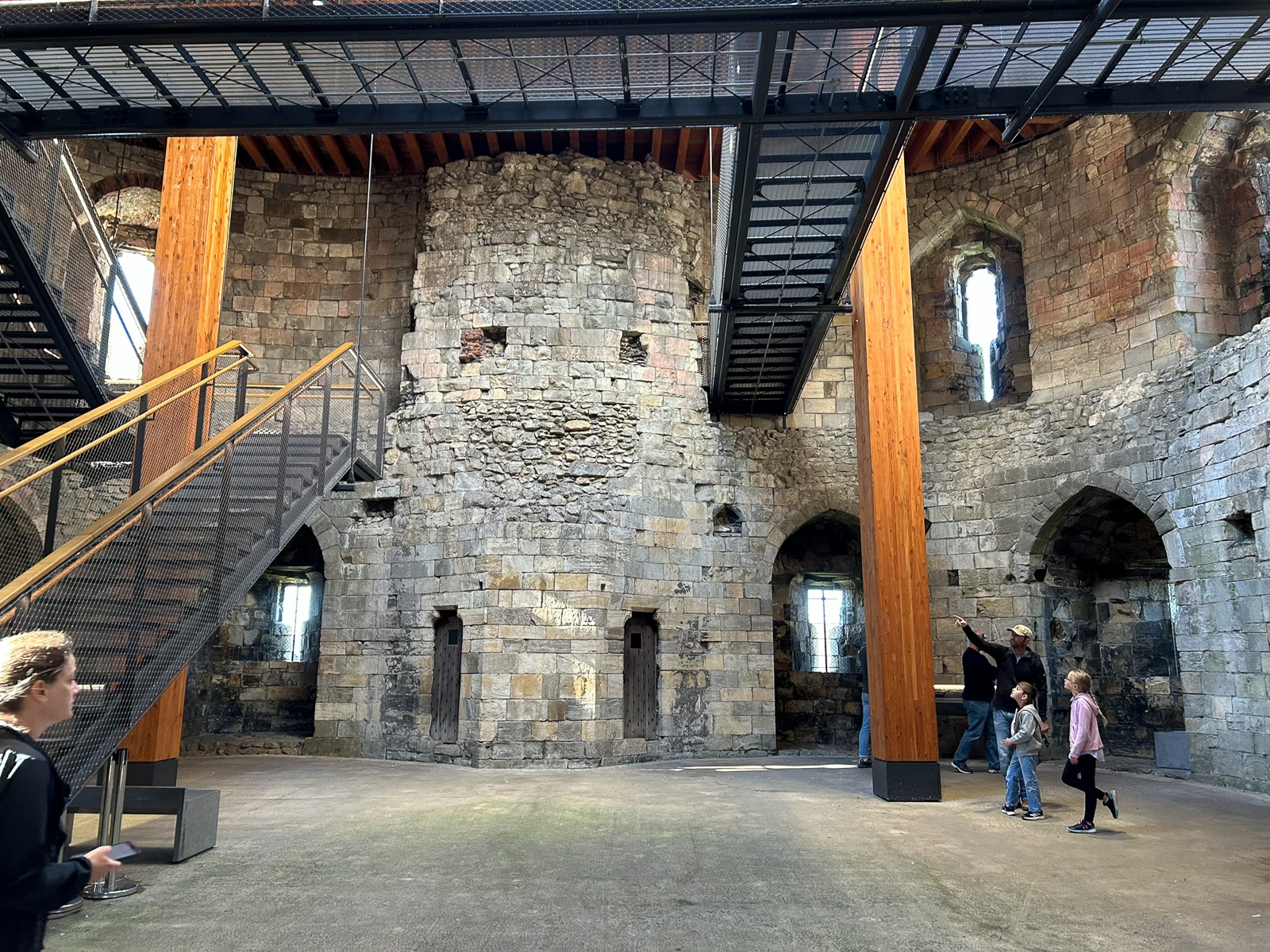 Today, a new roof deck gives excellent views over York’s historic skyline, with its medieval buildings and famous Minster. Inside, new walkways and staircases have opened up parts of the tower that have been off-limits for centuries.